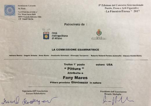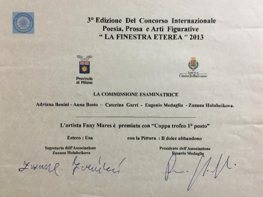 International Art and Literature Contest of the Cultural Association "La Finestra Eterea" in Milan, Italy
